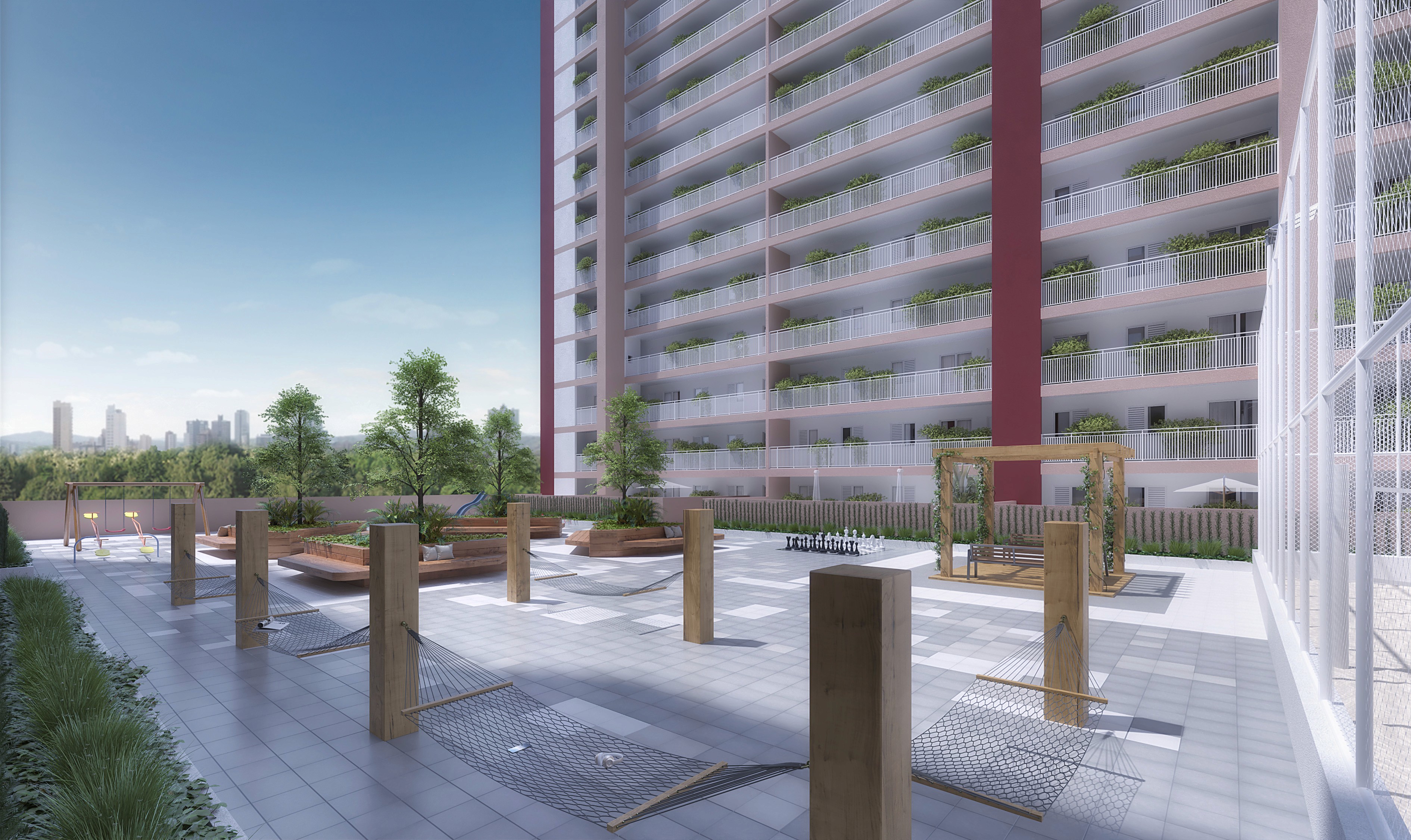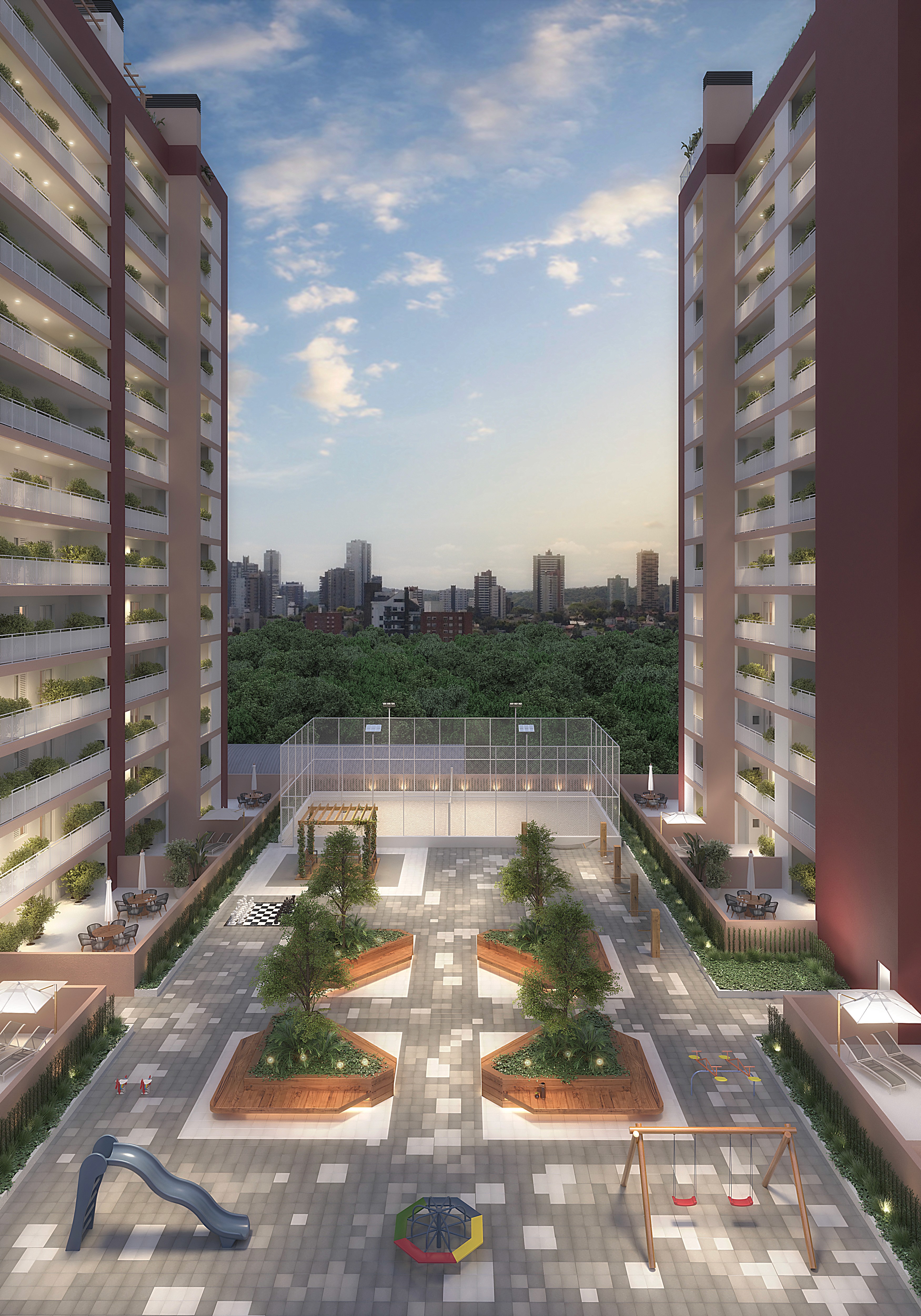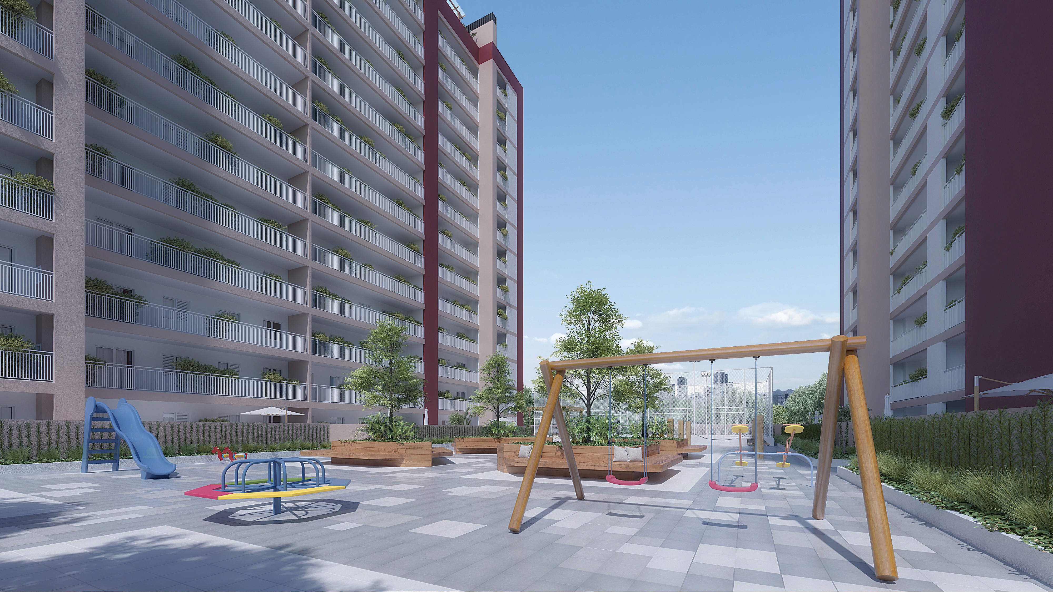 Um espaço seguro e planejado para os pequenos gastarem energia. Onde a diversão acontece com liberdade e você tem a tranquilidade de saber que seus filhos estão brincando protegidos dentro do condomínio.