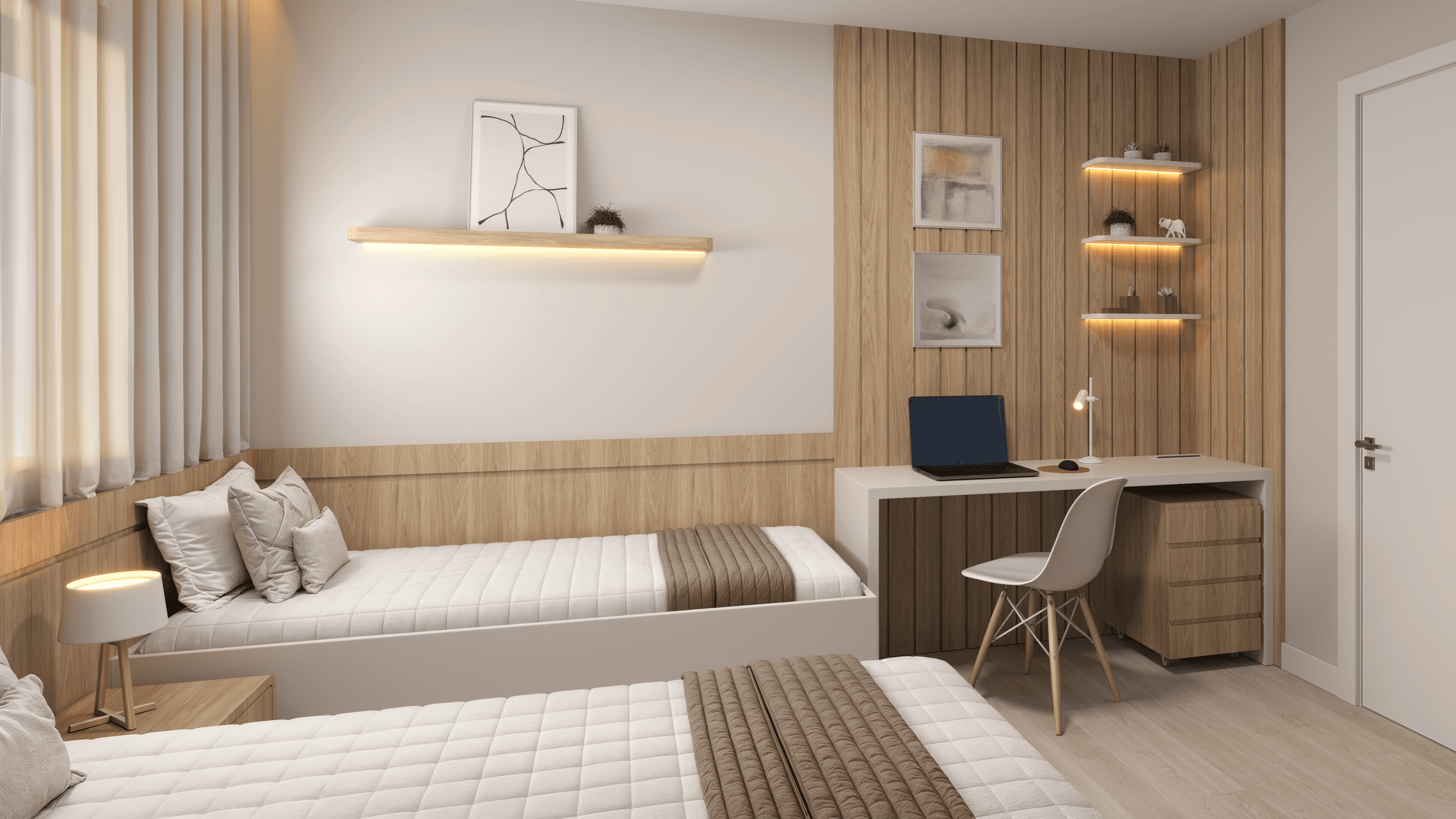 Ambientes projetados para o seu descanso absoluto. Com layout inteligente para armários e acabamentos que garantem o conforto térmico e acústico que suas noites de sono merecem.